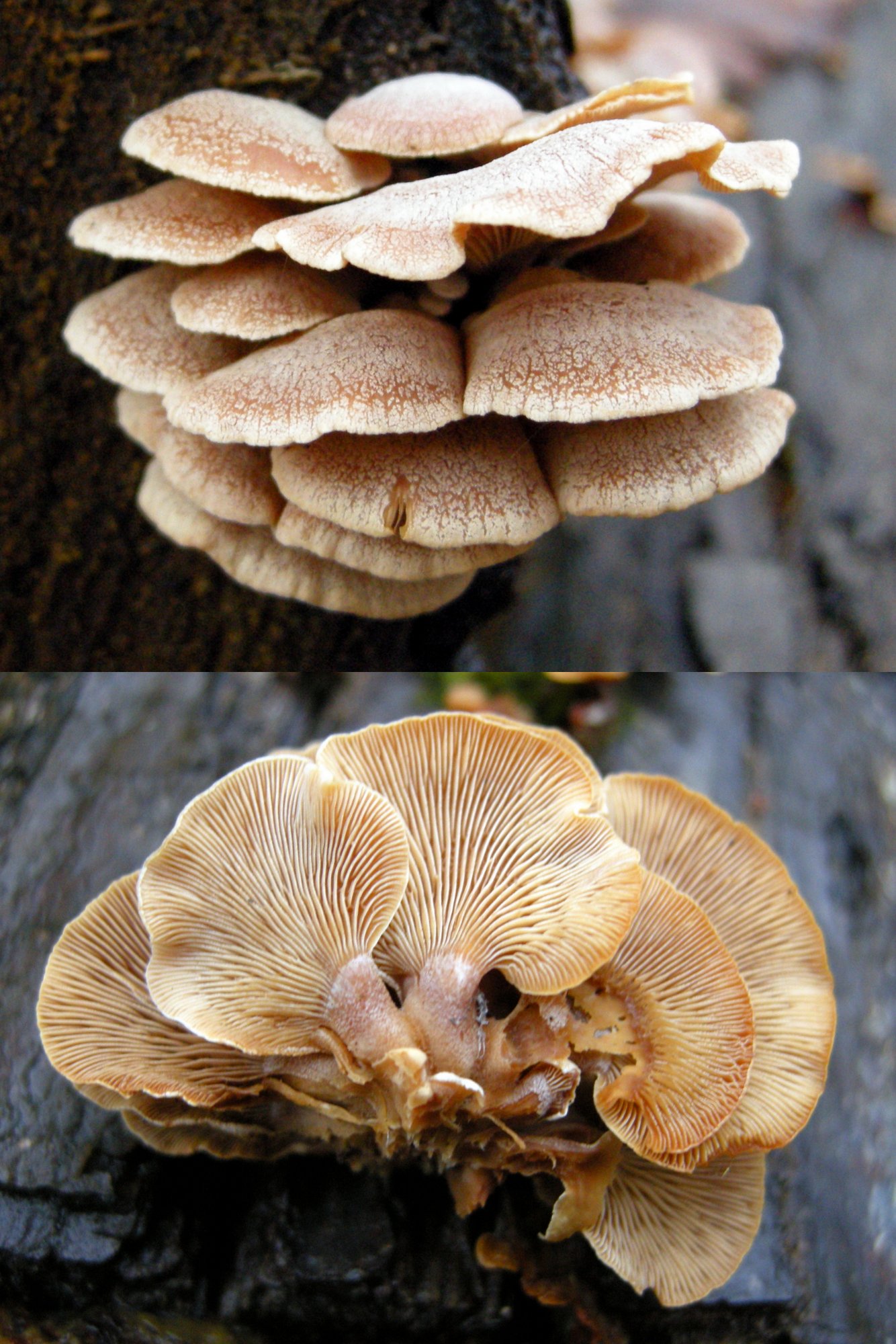 Non, pas copie conforme, Mycobank est un peu bosselé et les pores sont réguliers, le spécimen de Fifi et l'espagnol sont plats et à pores irréguliers. Je crois que le look de ce type de champignons dépend beaucoup de l'âge et du support : sur un support vertical, des consoles se formeront plus vite ...
