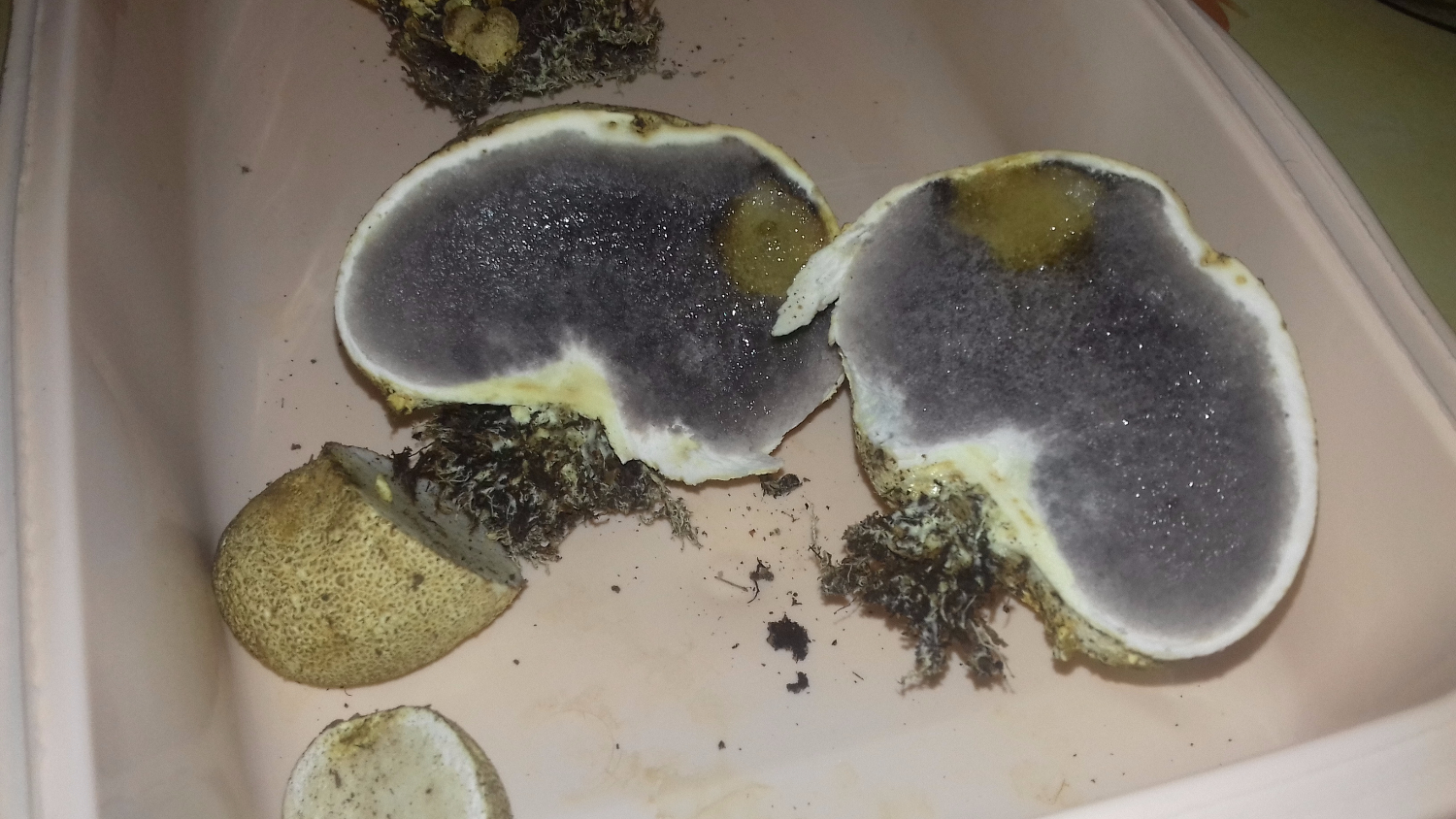 Effectivement, ça doit être un Scleroderma citrinum, j'ai coupé le plus grand, et voila ce que ça donne.