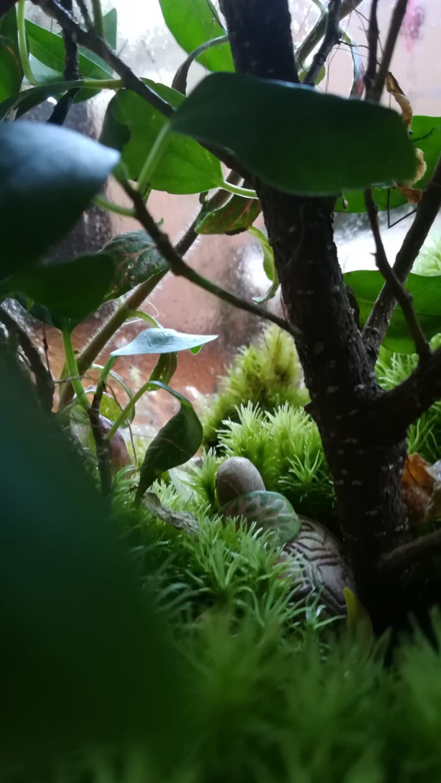 Je vous ai envoyé tout ce que j’avais du champignon. Je l’ai trouvé dans mon terrarium dans lequel il y a un ficus et de la mousse :