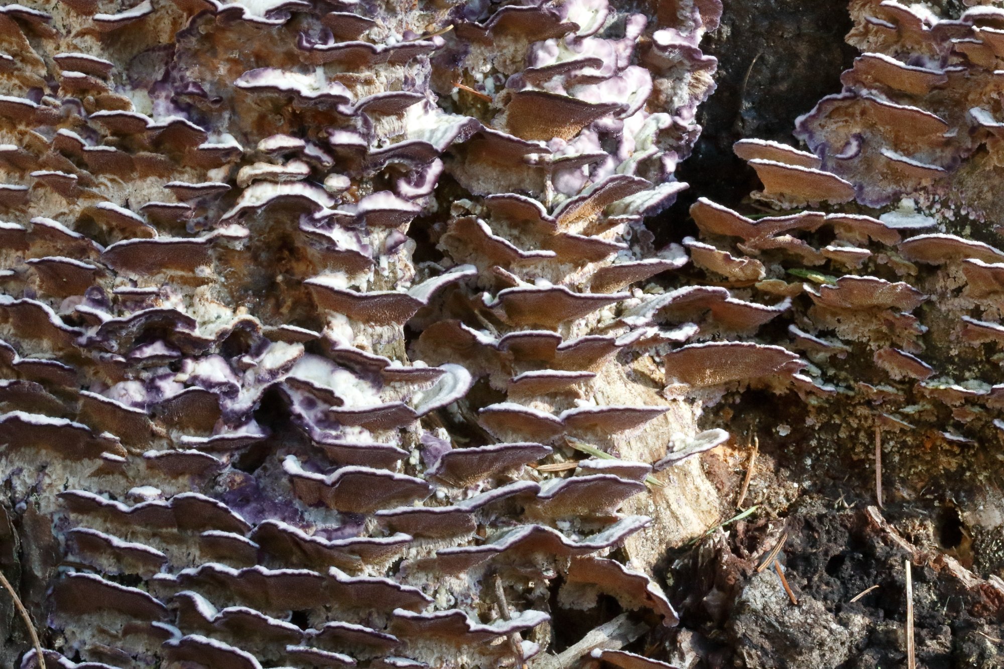 Et l'espèce que nous avons déterminée est bien Trichaptum abietinum ! Sur les autres espèces communes en France, si l'on se fie à MycoDB, biforme vient sur feuillus, byssogenum (= Trametes iodes ) semble orangé, hollii est quasi-hydnoïde et laricinum ...