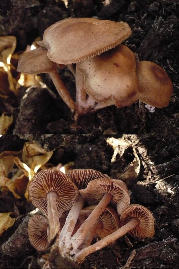 Je vois souvent Gymnopus confluens , étant très commun dans ma région et je confirme qu'ils me paraissent ... telle que Gymnopus obscuroides voir même proche de Gymnopus inodorus ou Gymnopus impudicus .