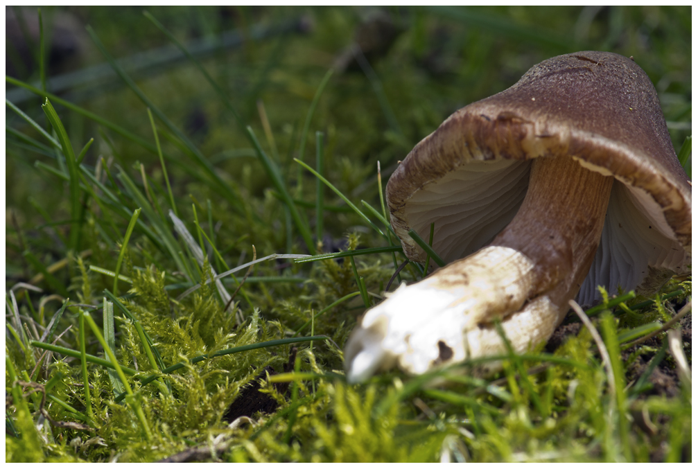 Chapeau environ 3cm de rayon, ferme. Stipe 5cm. Odeur fongique. Lames libres a priori (je n'avais pas de couteau).