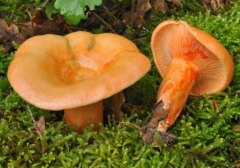 ... dit Marcel Bon), excluant le lactaire délicieux ( L. deliciosus ), le lactaire détestable ( L. deterrimus ) et le lactaire couleur saumon ( L. salmonicolor ), à lait orange. Il nous reste alors essentiellement le lactaire sanguin ( L. sanguifluus ) et le semi-sanguin ( L. semisanguifluus ). ...