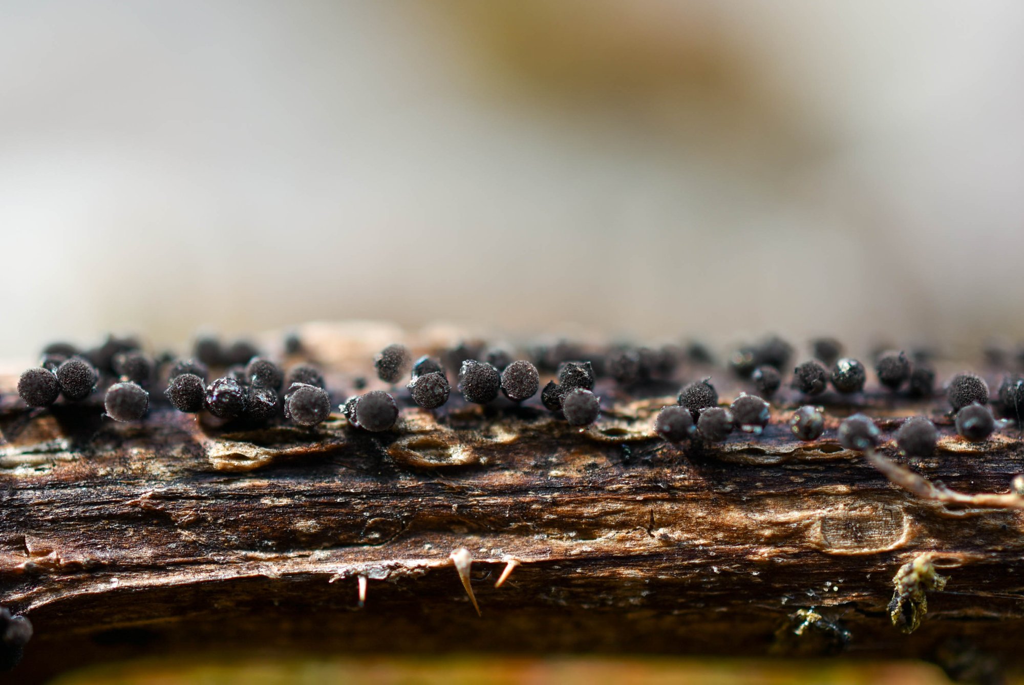 ... en ai rapporté un bout, et toutes les boules se sont ouvertes libérant une sporée bien noire ( 2ème photo) Même le genre je ne suis pas certaine: Lamproderma, Diderma? Merci pour vos lumières