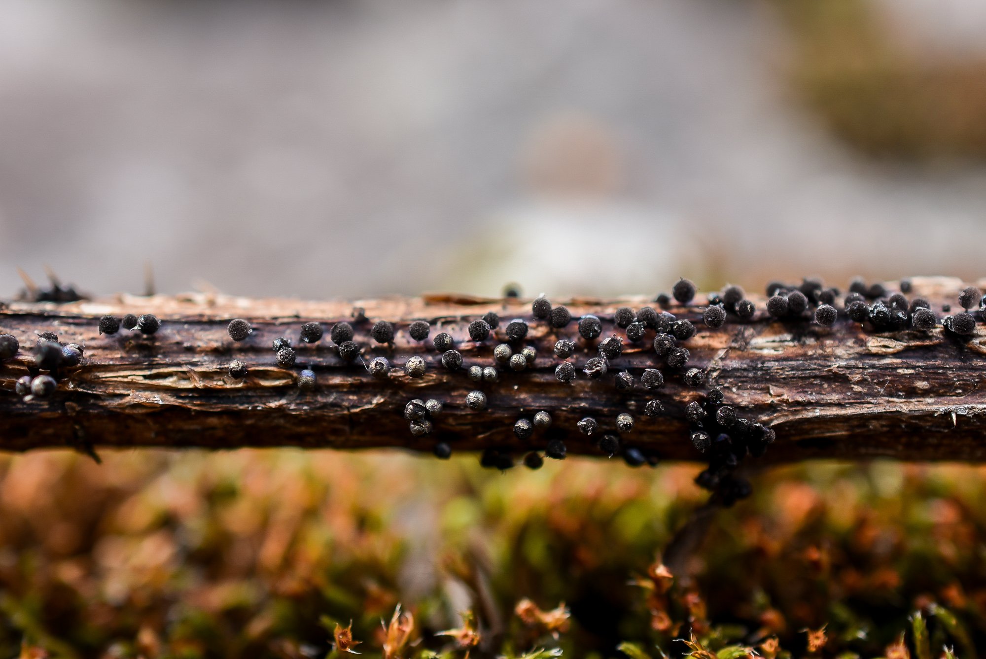 ... en ai rapporté un bout, et toutes les boules se sont ouvertes libérant une sporée bien noire ( 2ème photo) Même le genre je ne suis pas certaine: Lamproderma, Diderma? Merci pour vos lumières