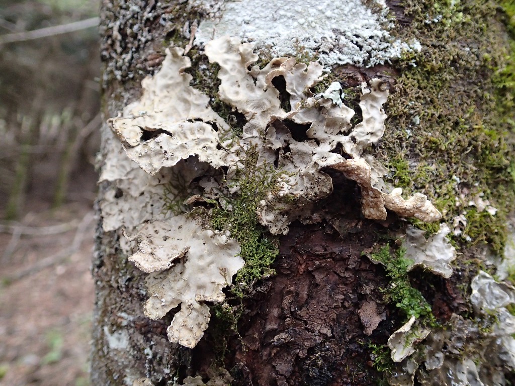 Le lichen le plus haut couleur jaune-vert ressemble davantage à un Lobarina scrobiculata avec ses grand lobes en forme de cuillère et sa face inférieure plutôt brune.