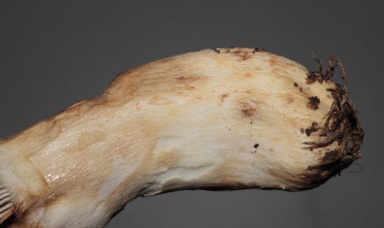 Comme on peut le voir sur ce pied d'une russule mature, pas du tout de rouge à la base du pied, par contre le stipe prend des teintes orangées à la manip... lames nettement interveinées, je resterai donc bien sur pectinata