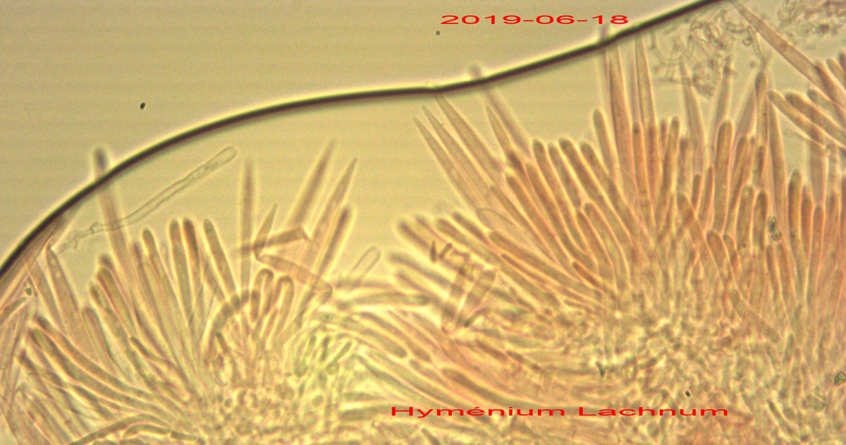 ... pas certains termes en anglais. Après explications, voici sa réponse. "Si ton espèce est cristaux-, crochet+ et vbs-, ok pour Lachnum virgineum qui est très commun, polyphage et qui possède ces poils peu capités." Ce qui correspond à mon spécimen. Je renomme.