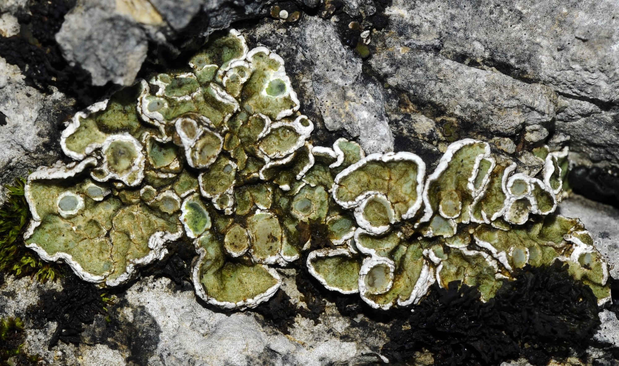 Encore une Squamarina, avec de apothécies vertes ... Je donne ma langue au chat. Une chose est sûre, ce n'est ni S. cartilaginea, ni S. gypsacea, les deux espèces que je connais maintenant ...