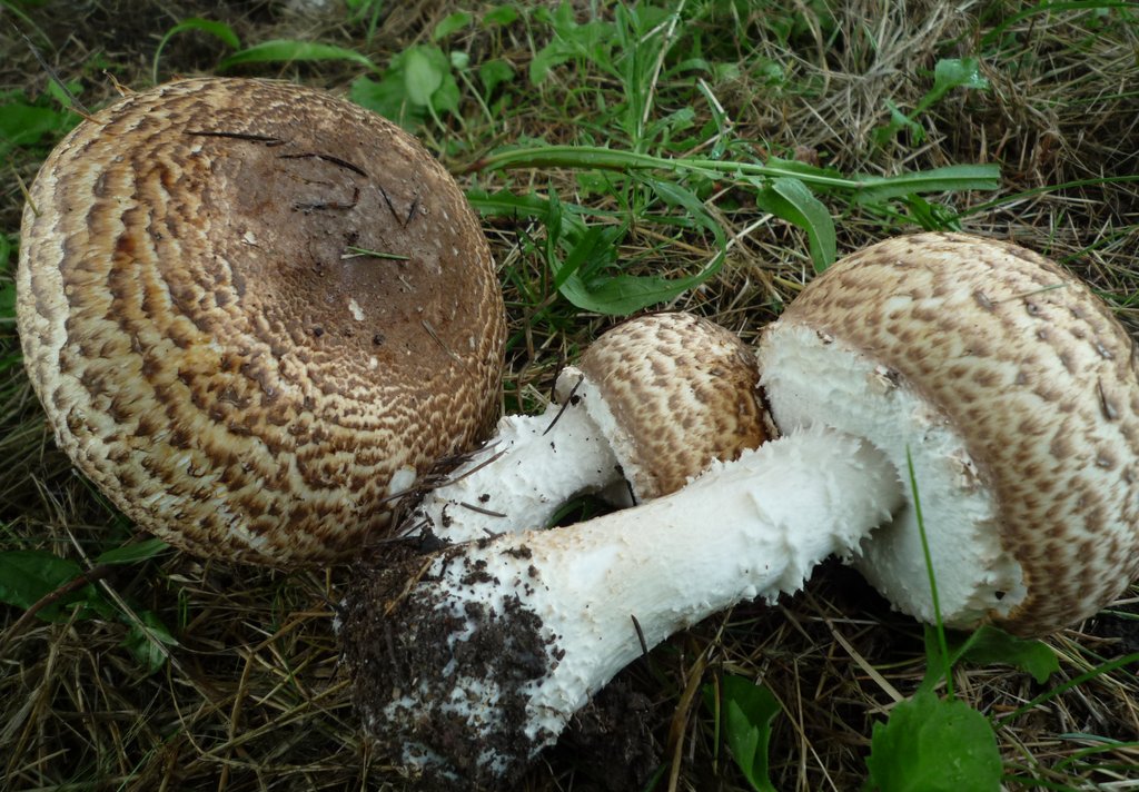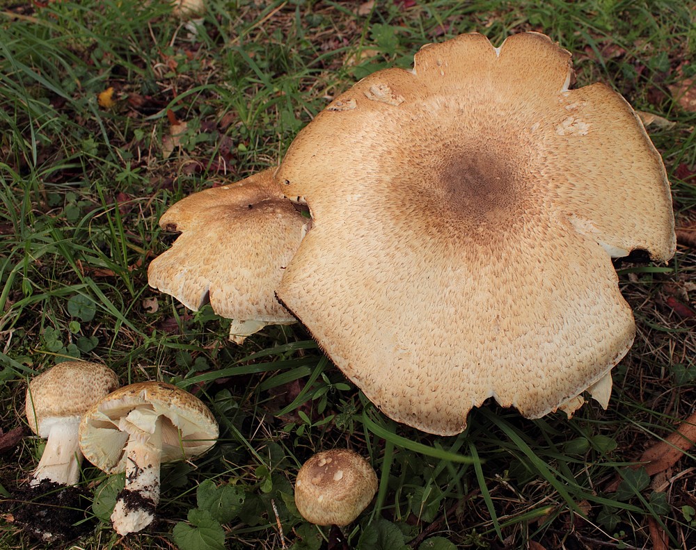 des agaricus augustus vraiment augustes avec quasi 30cm de diamètre... on peut comparer avec les feuilles de violettes ou de lierre au pied pour se donner une idée de la taille !