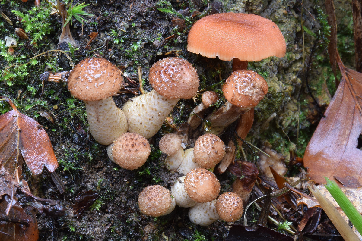 Cet automne dans les Vosges vers 250 m, on ne voit quasiment pas le très commun Armillaria mellea, est-ce dû à la sécheresse du mois d'octobre ? Par contre, des pousses impressionnantes d'Armillaria ostoyae sur souches de sapins et d'épicéas.