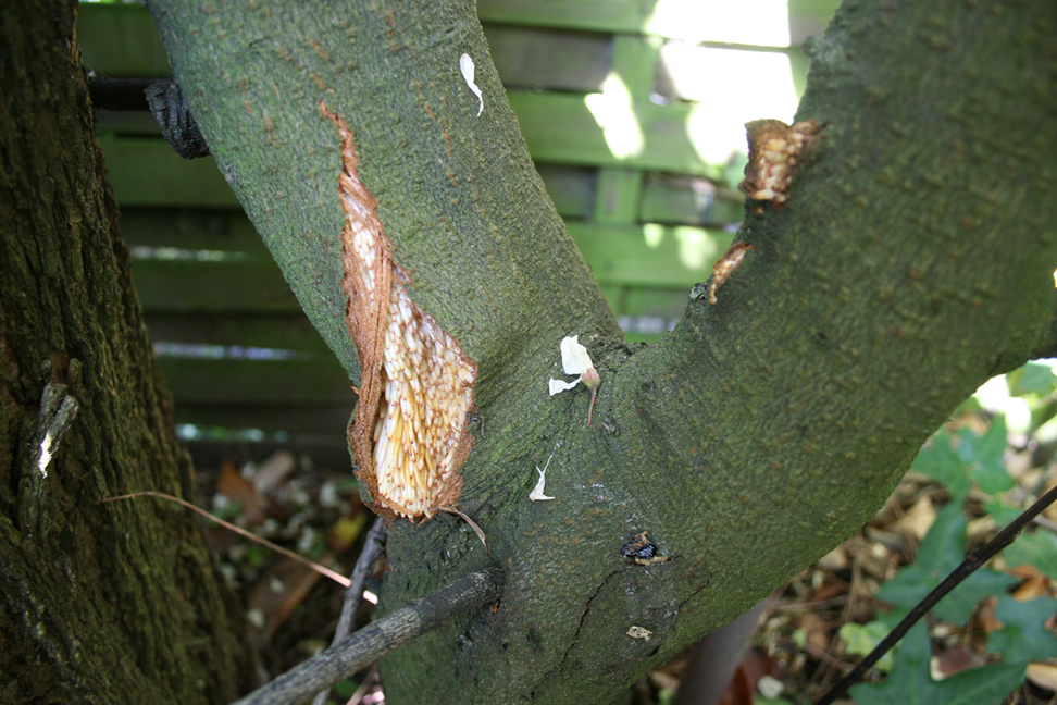 ) qui ont progressé 40-50cm dans le tronc et qui ont fait déchiré l'écorce. Il n'y a rien sur la plante ou au sol comme carpophore.
