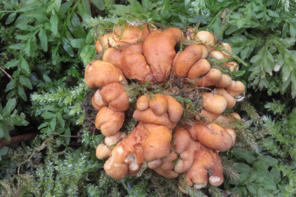 Hypocreopsis lichenoides est un Ascomycota de la famille des Hypocreaceae. Le stroma est d'environ 50 mm constitué de nombreux lobes serrés d'environ 20 mm de long à 6 mm de large, comme des doigts (de pied), de couleur orangé-jaunâtre. La chair est ouateuse, pas d'odeur (de pied) ni de saveur (je ne suis pas un adepte du fétichisme du pied :lol: ).