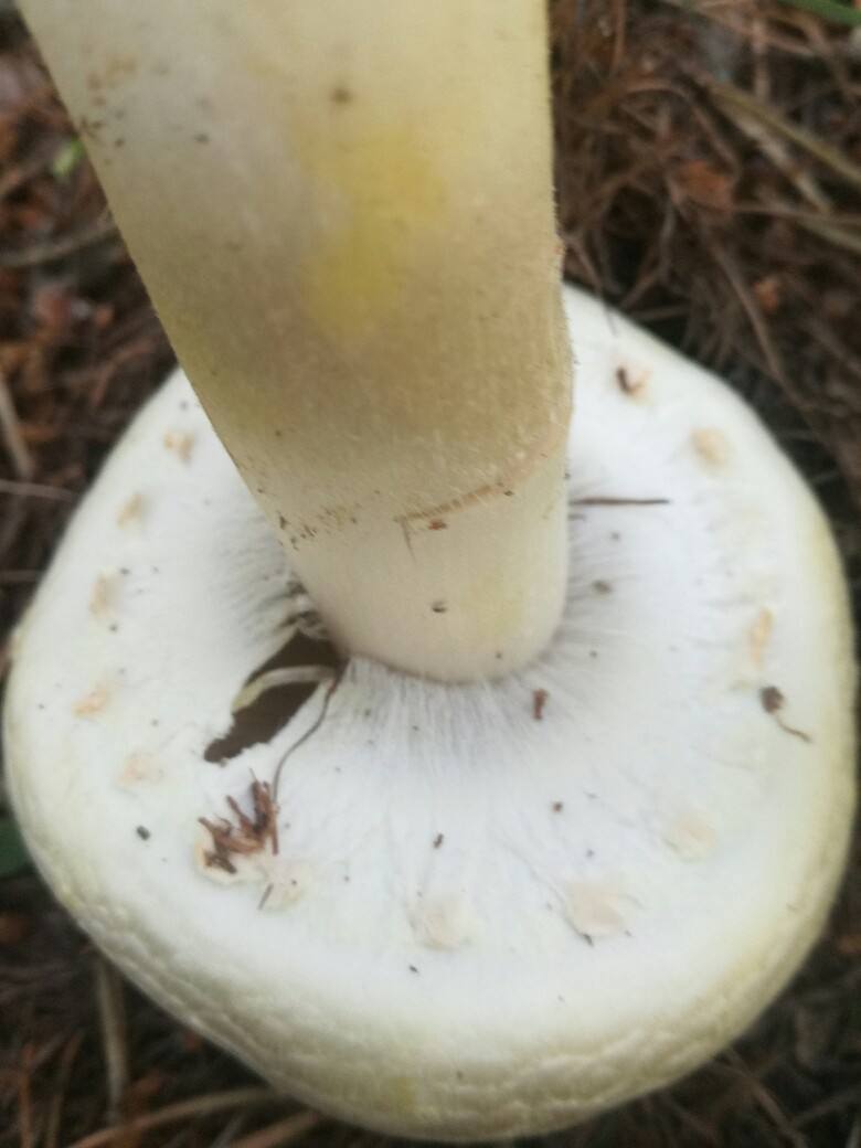 Je connais assez bien Agaricus xanthodermus et ses odeur et saveur particulières. Je ne les retrouve pas du tout ici. L'écologie ne plaide pas non plus spécialement pour lui, ni l'anneau d'ailleurs.