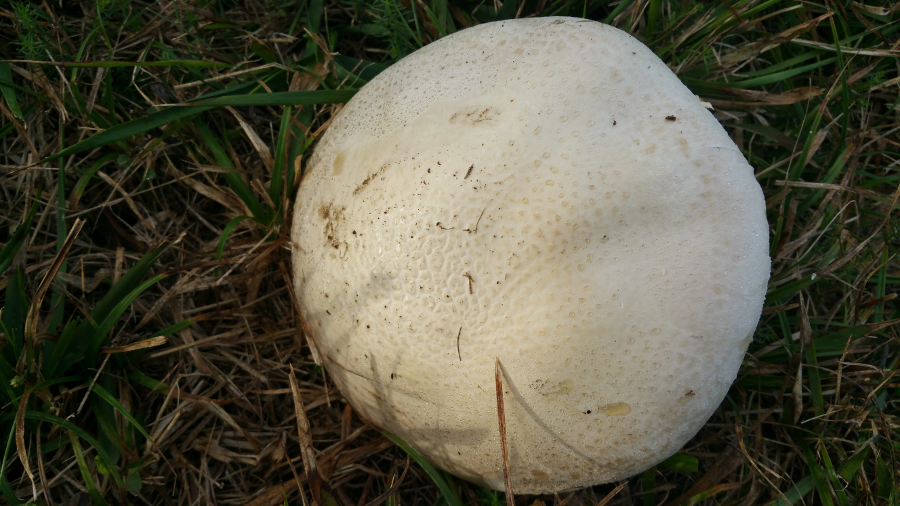 chapeaux blanc de 12cm, d'abord de forme globuleuse (hier), puis plan, de couleur blanche avec présence d’écaille