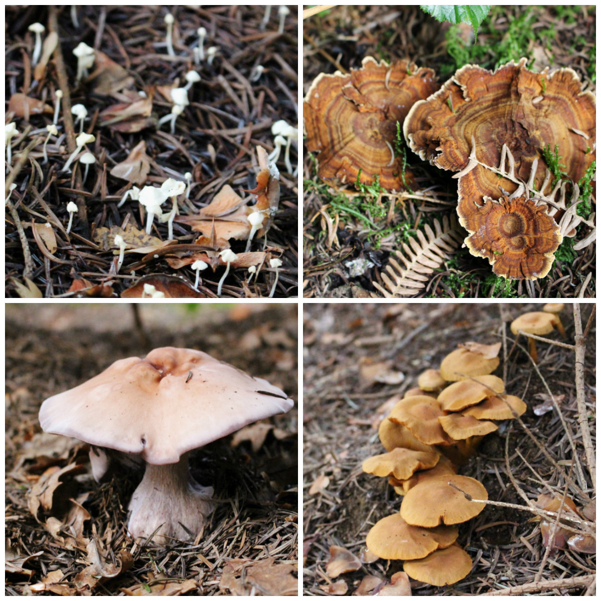 Cortinarius, Boletus, Agaricus, Lepista, Stereum, Tricholoma, Laccaria, Collybia (au sens large), Amanita, Lycoperdon, Geastrum, Mycena, Hypholoma.