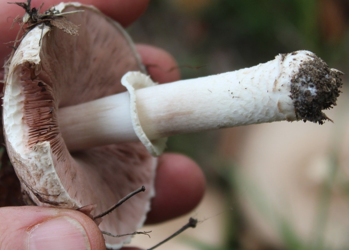Pied un peu élargi à la base (clavé) et squamuleux sous l'anneau