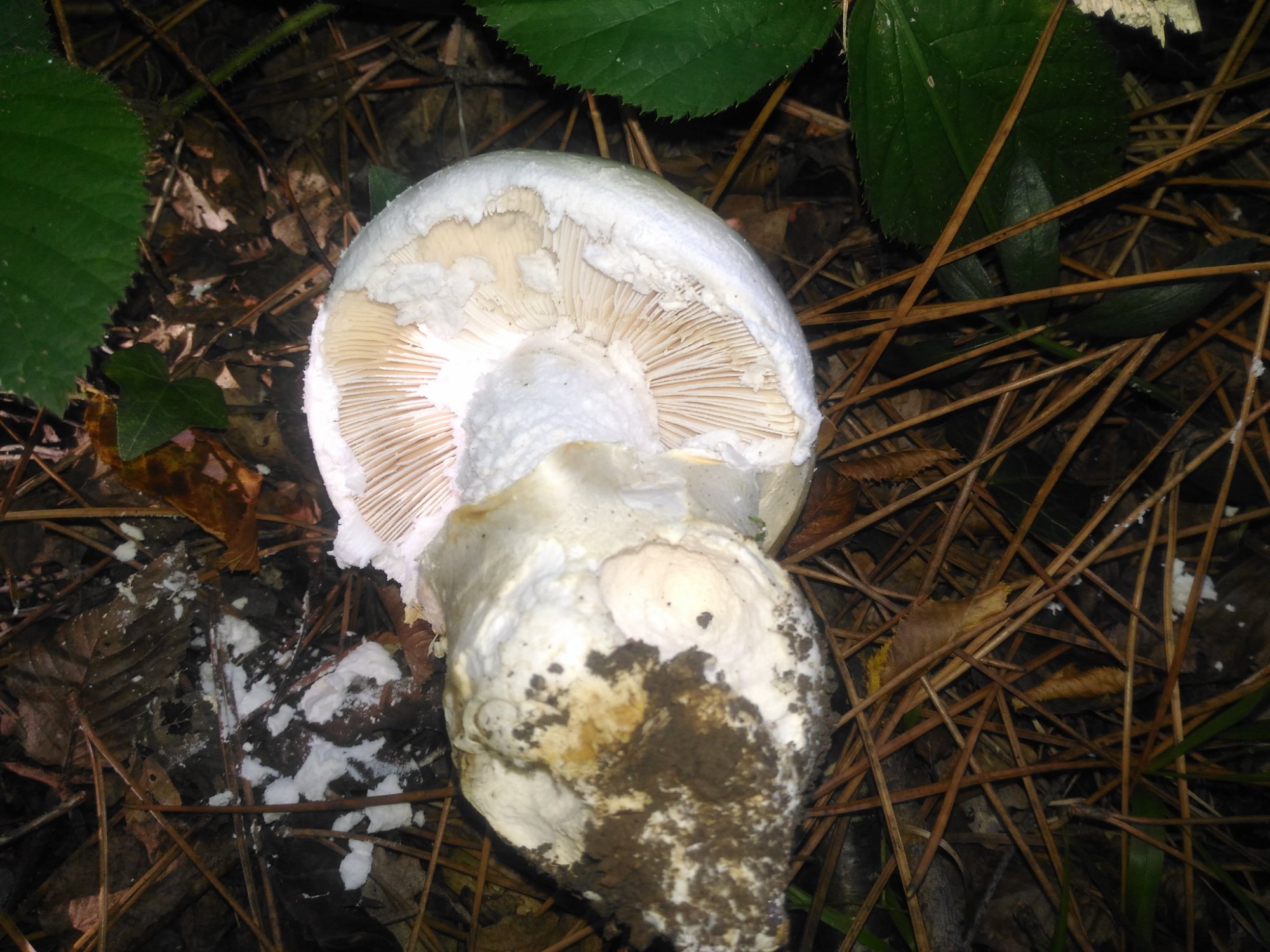 A. proxima a un anneau membraneux. Ici, on ne voit pas d'anneau membraneux, mais plutôt de nombreux flocons crémeux sur le pied et sur la marge du chapeau. Ajoutons à cela les dimensions des champignons, Chapolin souligne leur très grande taille.