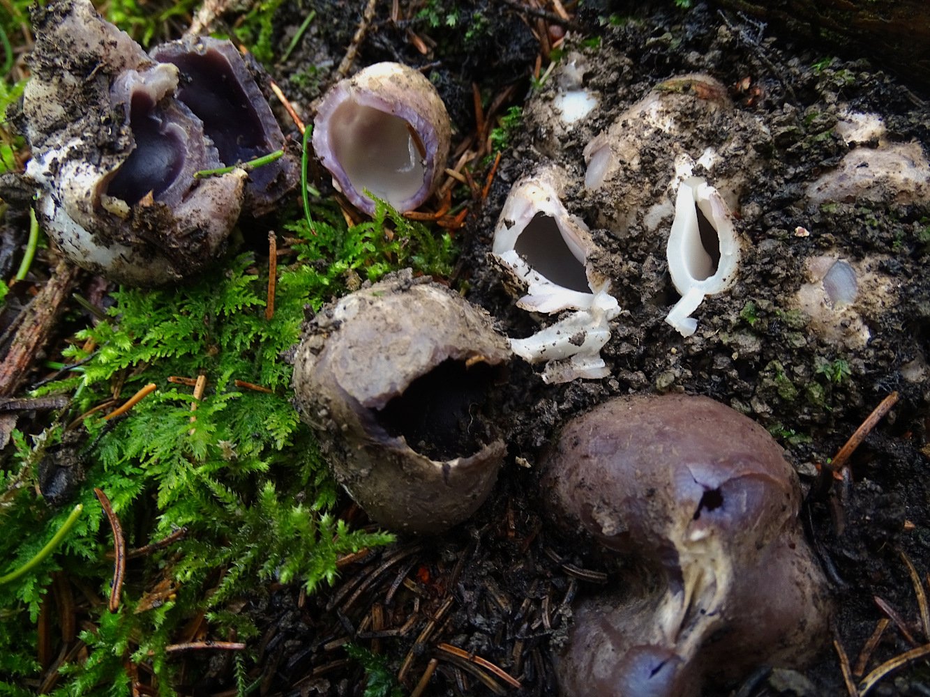 Il s'agit donc d'une pézize souvent précoce, à hymenium violacé, poussant plutôt sous conifères.