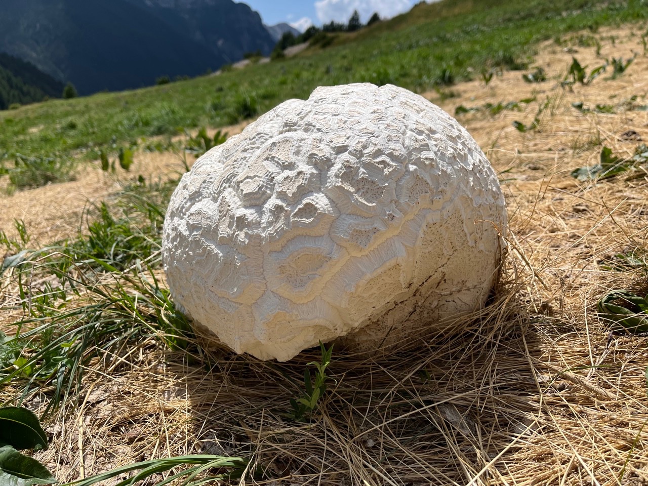 J’ai trouvé vers 1900m dans le Queyras, deux beaux spécimens à priori de Calvatia, de 34 et 37 cm de diamètre bien que pas par sphériques, maintenant est-ce gigantea ou booniana ?