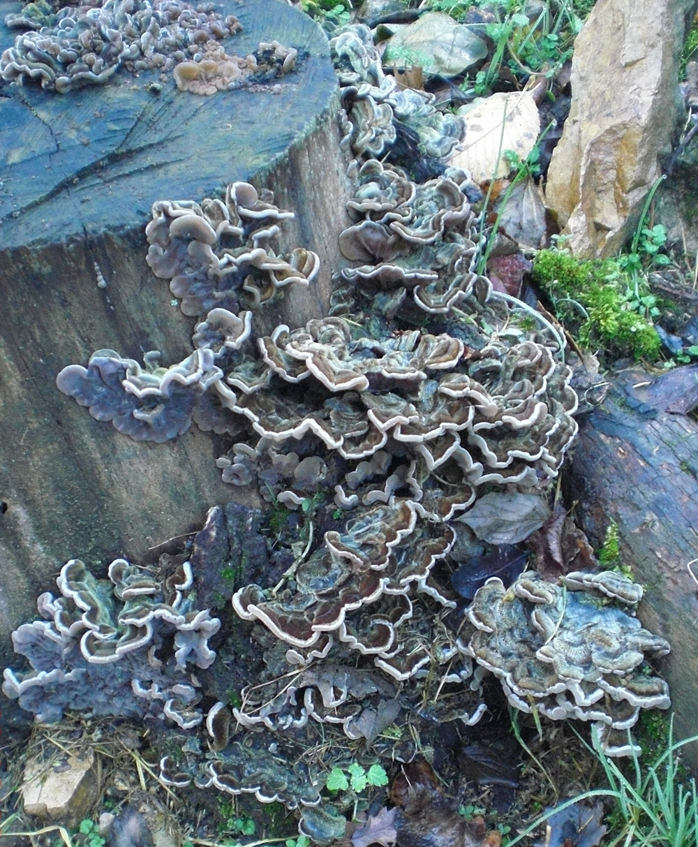 Jeunes exemplaires, en partie résupinés, sur vieux noyer abattu. Arconsat (63). Autres photos sur ce sujet.