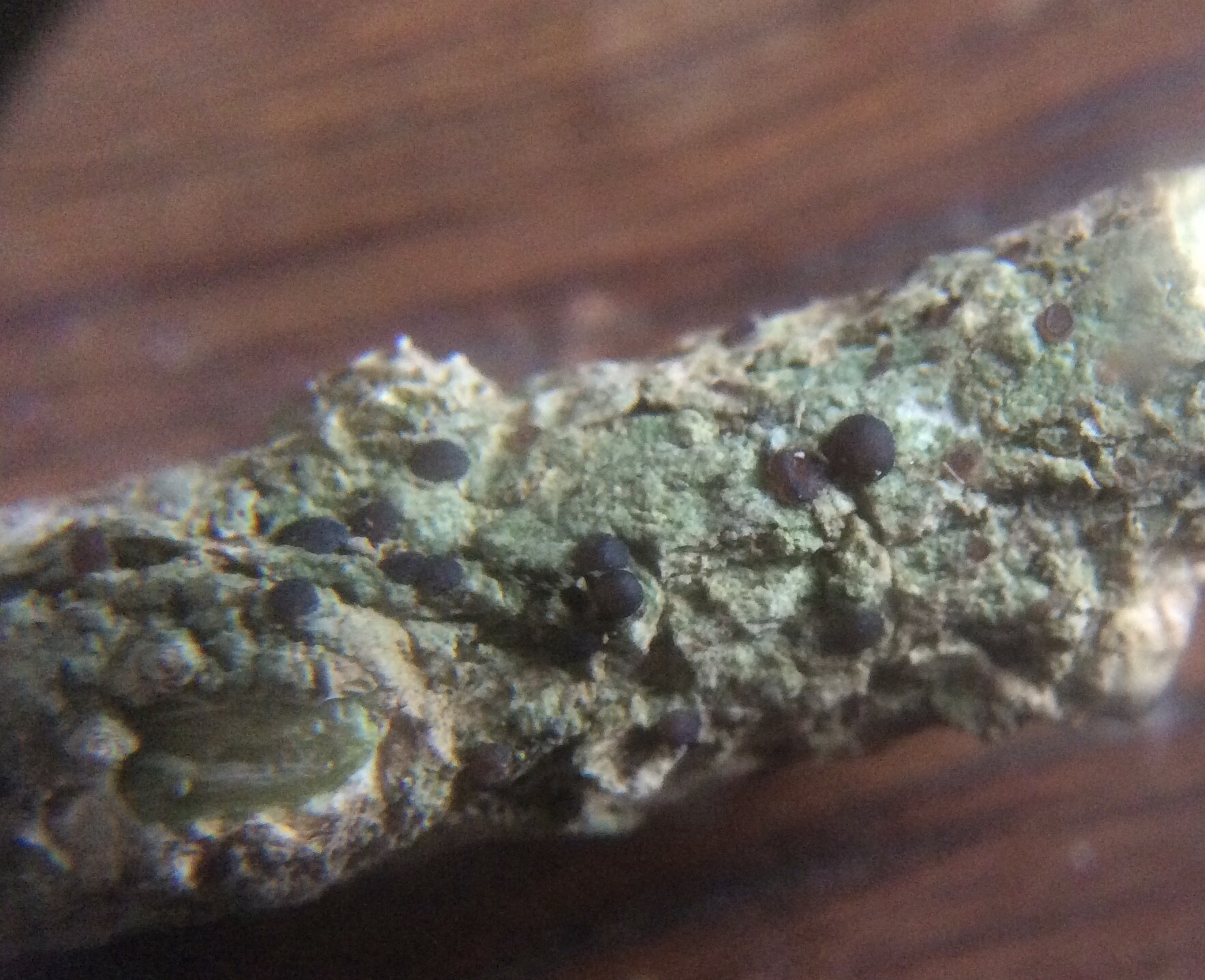 J'avais compris ce matin le rapport avec la fête des Rameaux mais sans aller plus loin. Soudain, avant que tu n'évoques le buis, je me suis demandé s'il n'y avait pas un bois spécial attaché à cette fête : il se trouve que c'est le palmier mais dans nos régions le buis. Ensuite j'ai pris un peu au pif une espèce qui vient sur ce bois (et non sur les feuilles). Ne crois pas un instant que je l'ai reconnue ! C'en est peut-être une autre, on verra. Et Fouad nous vérifiera la micro