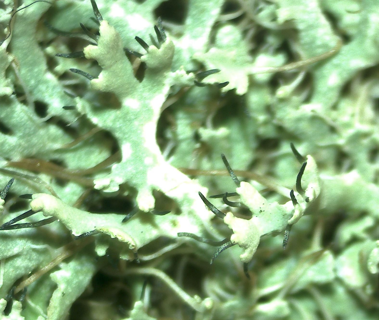P. adscendens est effectivement l'une des trois espèces de Physcia corticoles pourvues de cils. Les deux autres sont P. tenella et P. leptalea.