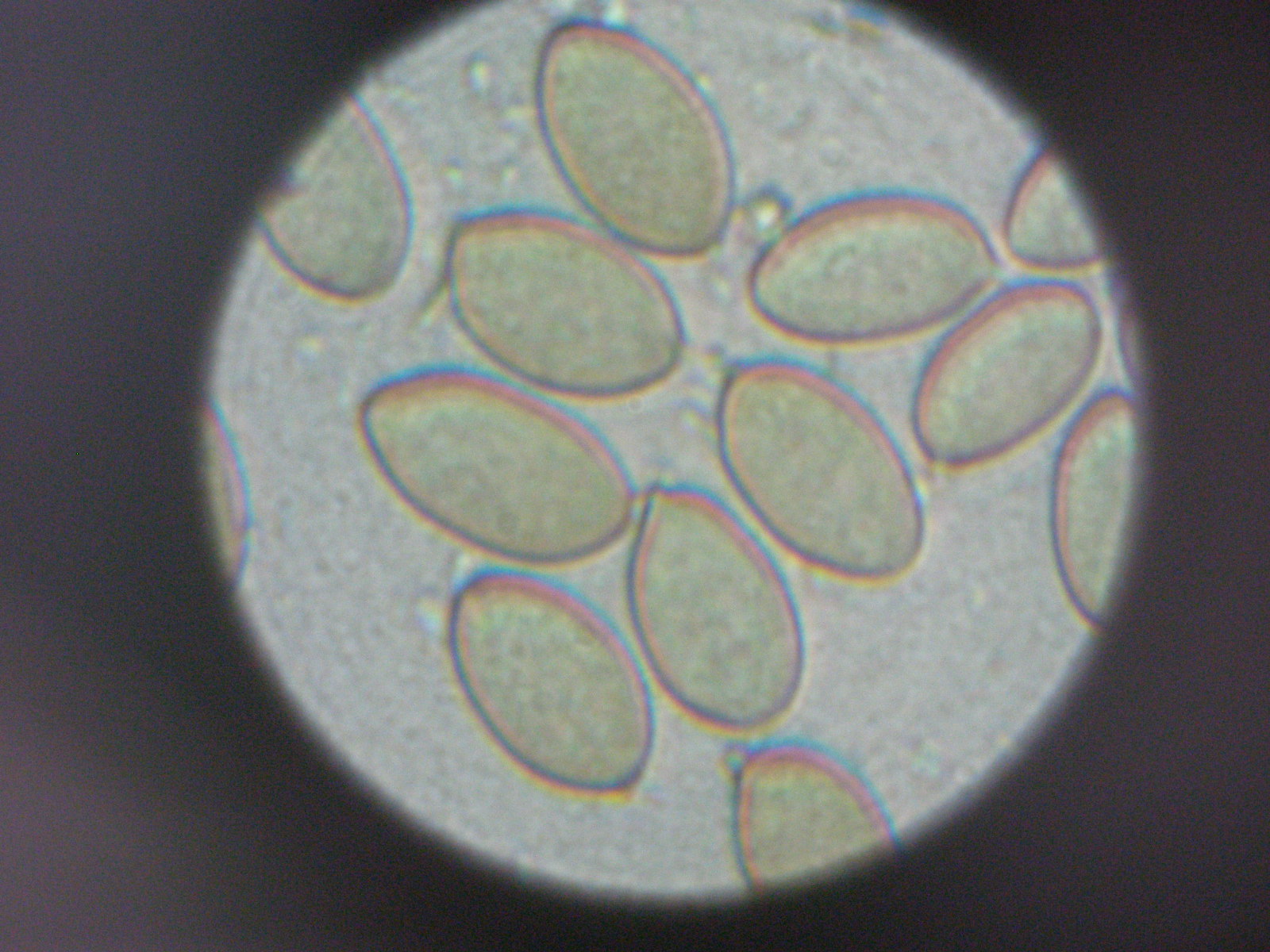 Con esto quiero decir, que no tengo micro de la cutícula o pileipellis; que lo único que conseguí fué ver esporas (consideré la var. bispora por el tamaño de las esporas, no porque viera los basidios bispóricos). Por la macro sí veo que el pie es fibriloso y se deshilacha, pero la cutícula o pileipellis no lo veo.