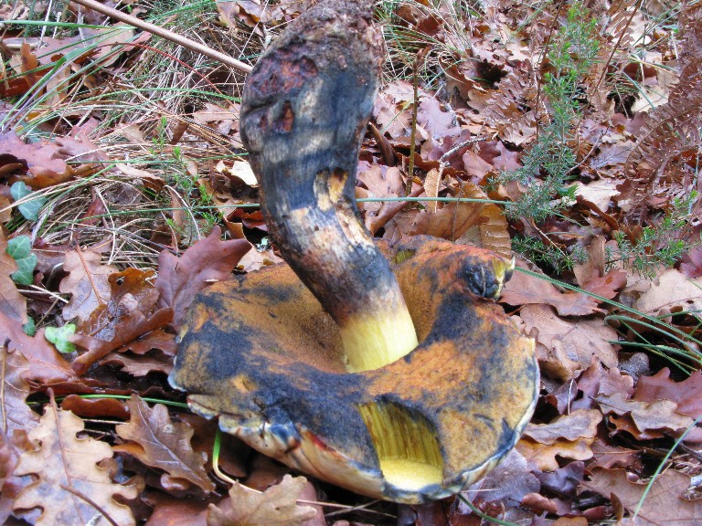 bleuissant au moindre contact. Tubes : jaune vif puis jaune verdâtre, très bleuissants.