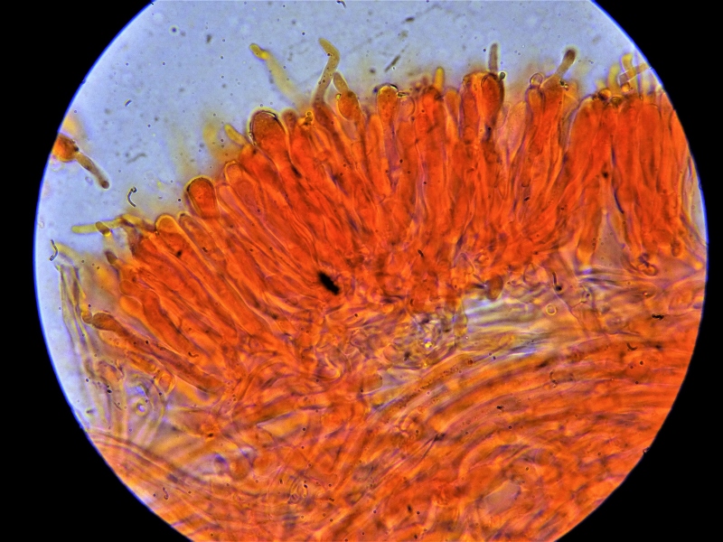Fifi a écrit :Je pense qu'il n'y a pas de doute pour le genre. Jean-Pierre, sur tes dernières photos micro, on voit des cheilocystides (cystides d'arête). Les cystides métuloïdes sont des pleurocystides, à chercher sur les face des lames.Je n'ai guère de doute sur le genre. Ce qui m'embête, c'est que je n'arrive pas à voir de cystide métuloïde. Certes il est difficile d'avoir une coupe mince et de dissocier (un vrai morceau de caoutchouc), mais en naviguant dans l'épaisseur en modifiant la profondeur de champ, je devrais les voir.