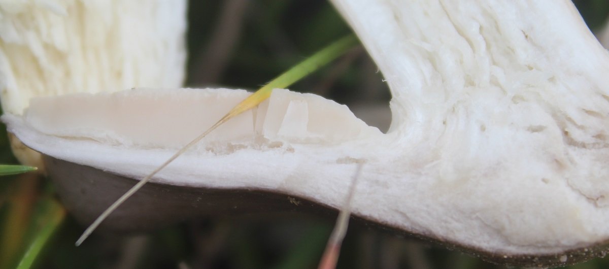Les lames blanches se rapportent à Lepista nebularis. Probable erreur de positionnement qui devrait se trouver en similitude sur la première ligne.