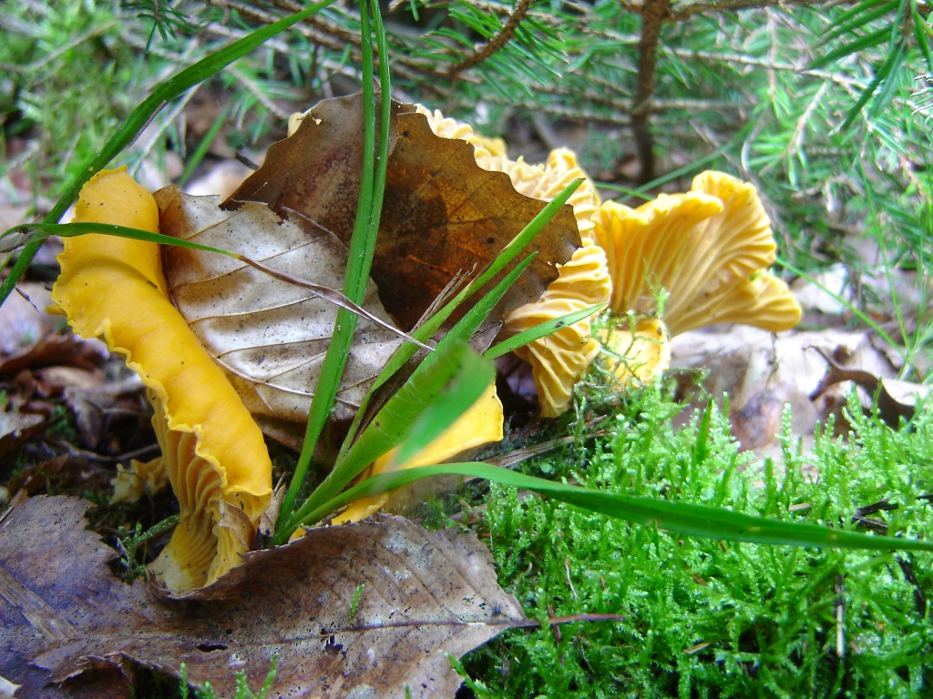 Cantharellus cibarius photographié le 29/08/2011 dans le cadre d'une étude personnelle de l'impact du piétinement et du ramassage de ce champignon, et du suivi de régénération d'une parcelle de forêt à cet endroit.