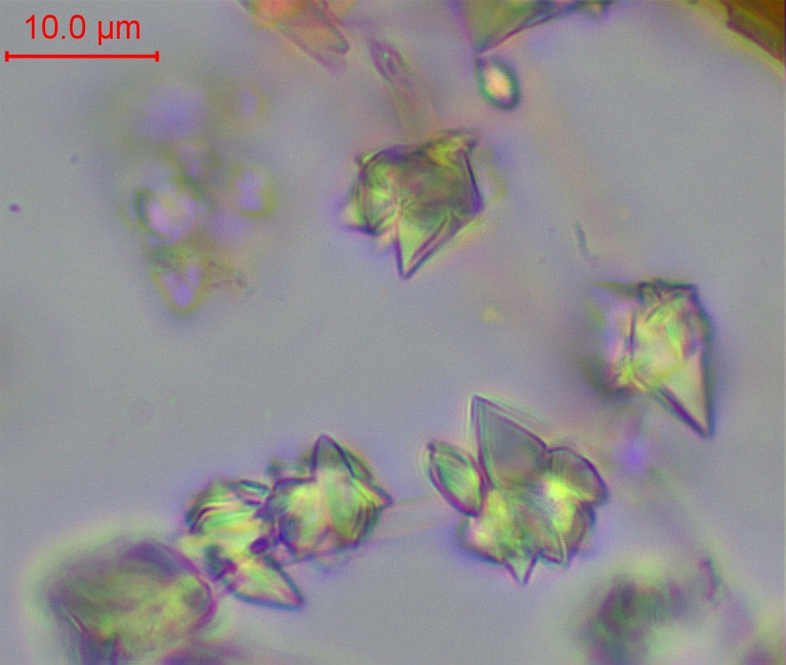 Hyphes bouclées, cloisonnées (on en voit une), certaines ampullacées (une), cristaux aciculaires (peut-être dernière photo ?)