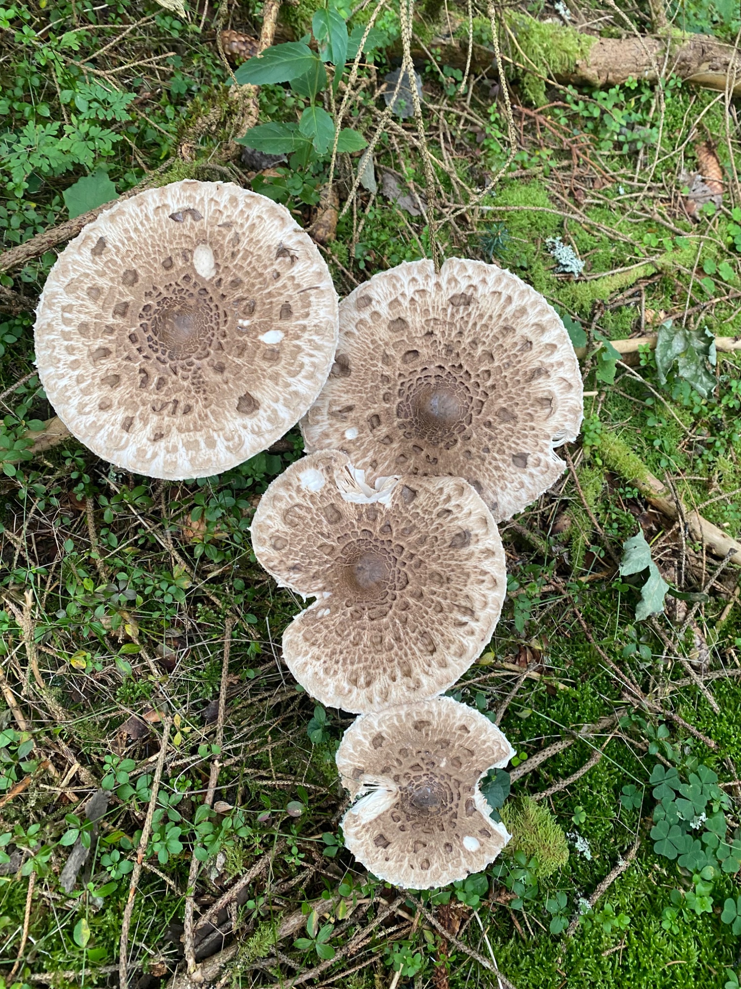 Je suis tombé sur ces champignons d’une trentaine de centimètres de haut et aux chapeaux d’environ 20cm de diamètre.