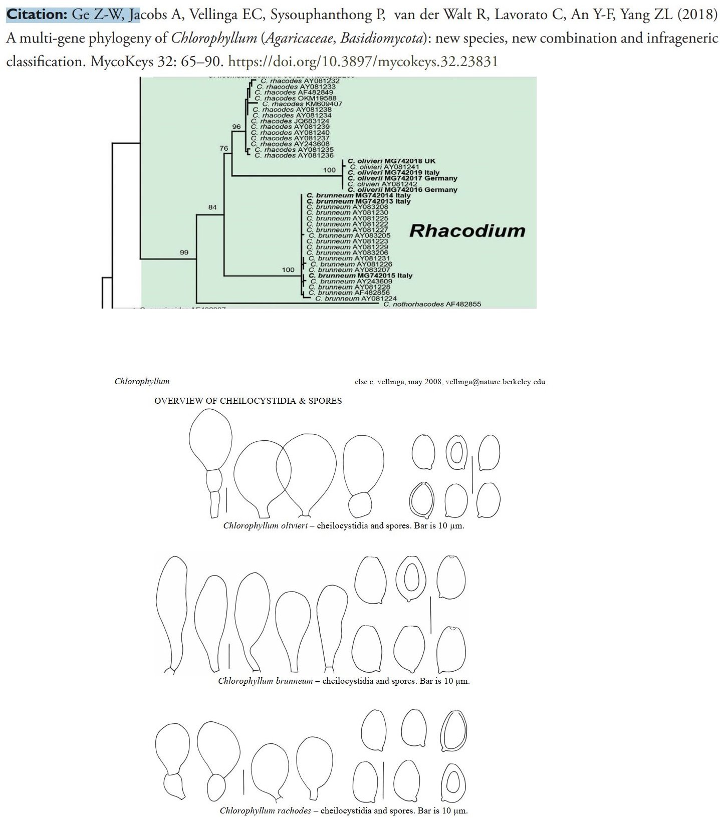 Une parenthèse. Il y a quelques temps j'avais entamé un petit travail non achevé en raison des sécheresses successives qui m'ont empêché d'échantillonner correctement mes espèces de Chlorophyllum. Pour comparer rhacodes et olivieri, j'avais noté que les cellules marginales (ou cheilocystides) ne sont pas assez caractéristiques et variables avec l'âge du champignon. Pour les spores, j'avais noté des différences intraspécifiques (mais par manque d'échantillon, cela reste une observation faible). Par contre, l'habitat était pour moi un élément capital, même si parfois cela pouvait être limite dans les zones en lisières de forêt : présence d'olivieri et rhacodes. Aucun olivieri en zone urbaine d'observé par exemple. La couleur du chapeau est aussi un élément très important, mais il existe des récoltes trompeuses d'olivieri qui peuvent être assez claires au début.