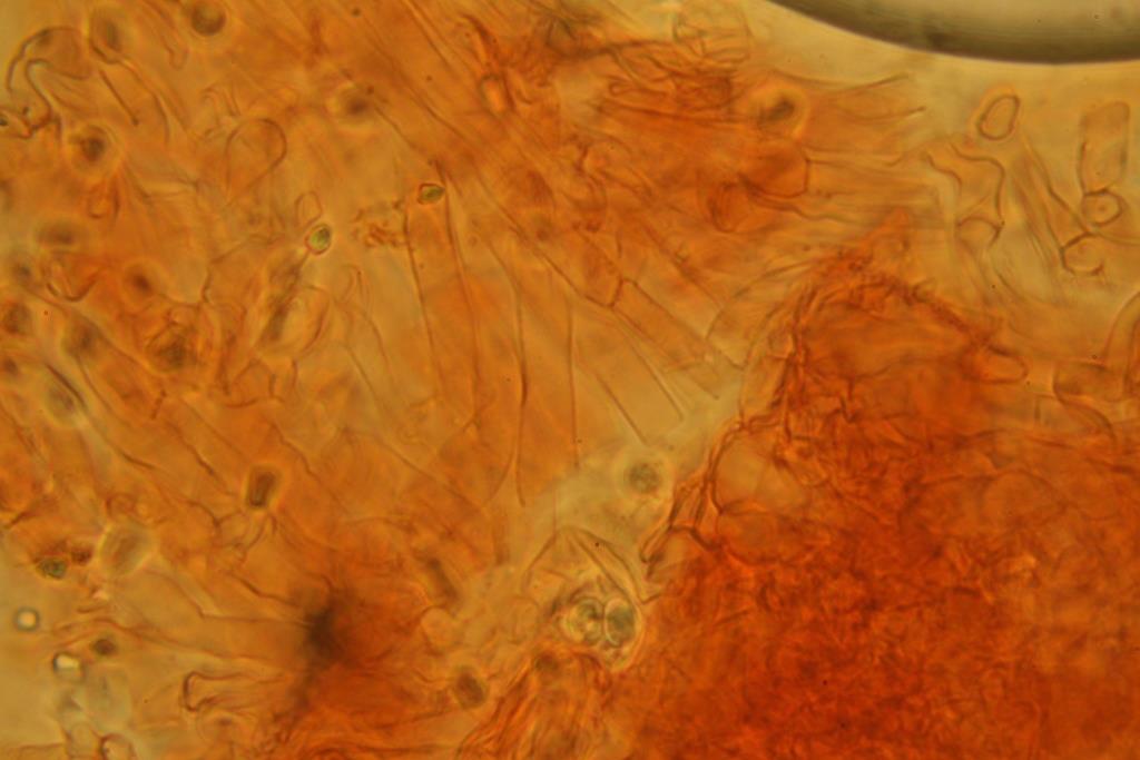inamyloideae. Cystidia nulla. Hyphae tramales inflatae, obscure dextrinoideae, fibulatae. Pileipellis stipitipellisque hyphae leves, fibulatae, in muco inclusae.