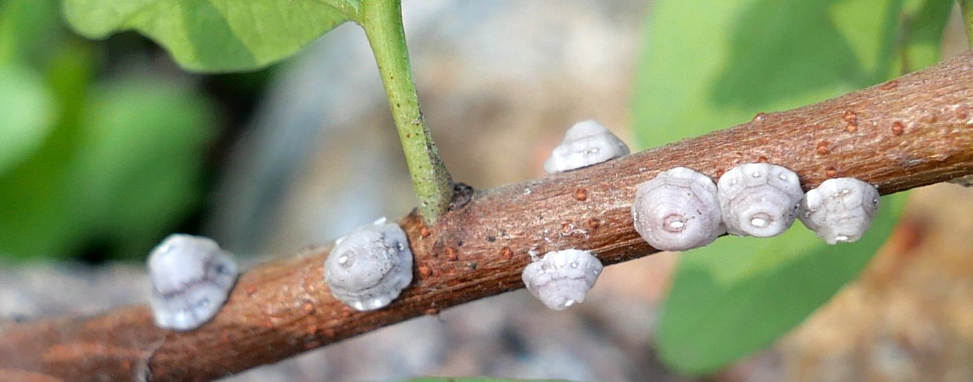 Je crois que vous l'avez tou(te)s : c'est bien Ceroplastes rusci, le céroplaste du figuier, avec ses curieuses plaques cireuses. Il s'agit ici de femelles : selon Fredon et Wikipédia (lequel a copié l'autre ?), les mâles sont plus petits, ailés et rougeâtres. Les petites choses rouges qu'on aperçoit en agrandissant les photos sont vraisemblablement des larves.
