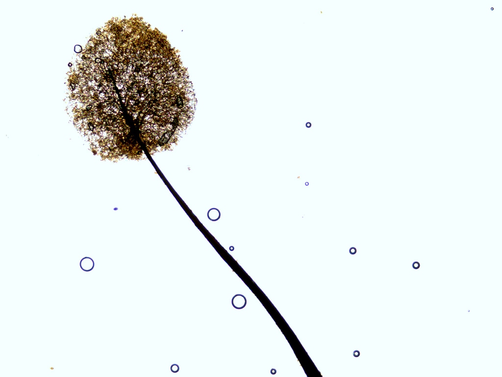 Deux photos micro et une photo d'il y a 2 jours où j'ai découvert à nouveau cette espèce par hasard en voulant en photographier une autre qui au passage se fait généreusement saupoudrer de spores.