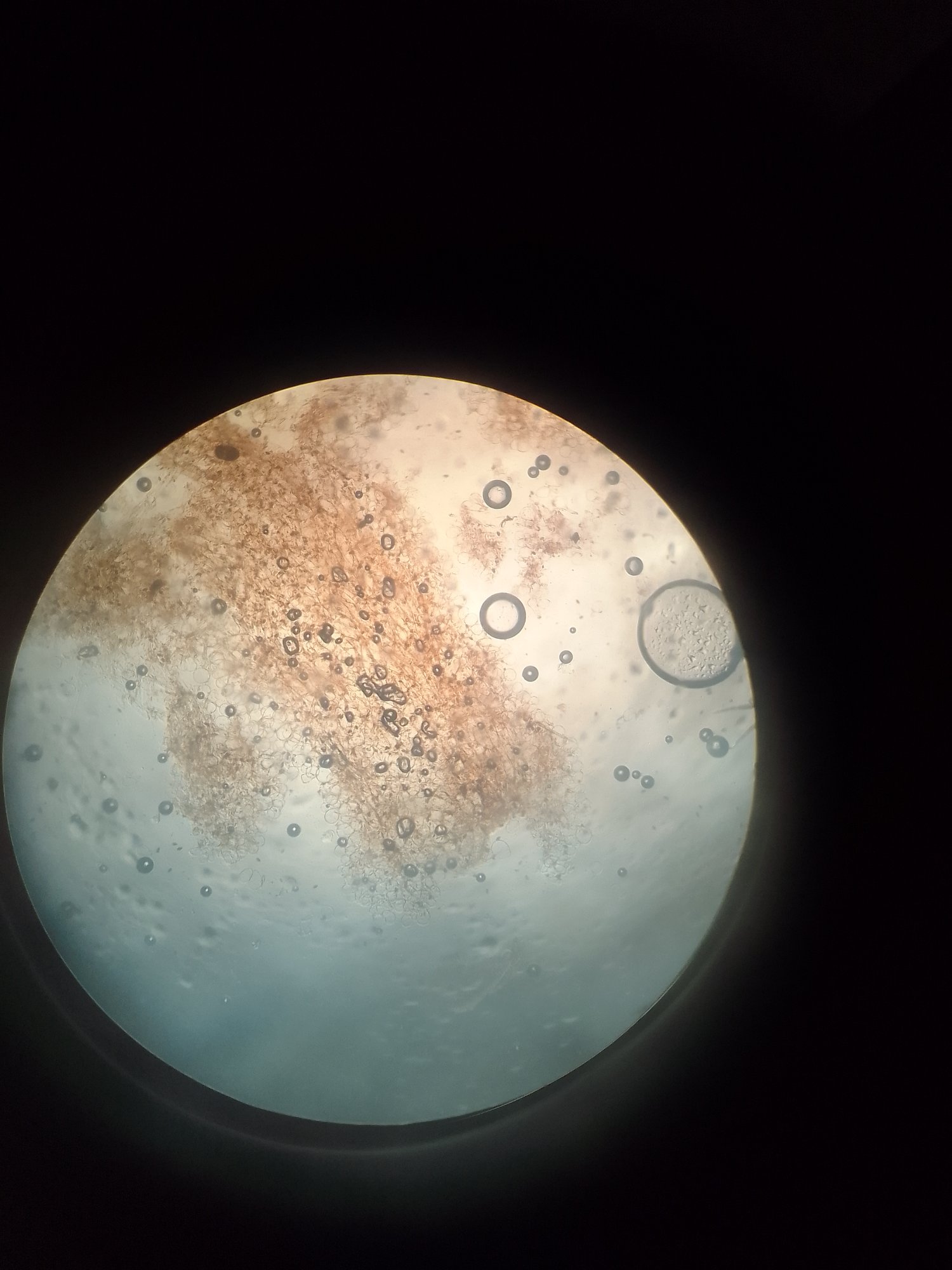Photos ci-dessous avec spores d'A.bisporus comme témoins. Spores elliptitiques apparaissant brunes noirâtre profond. Arête des lames avec cystides pyriformes et en dessous éléments couchés lagéniformes.