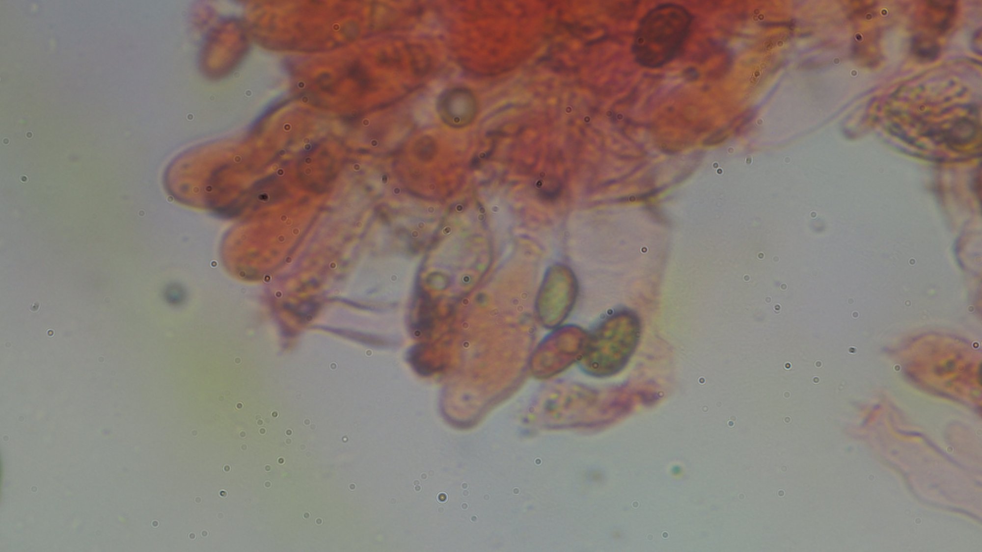 Voici des clichés, bon je n'ai pas amélioré la netteté et luminosité pour gagner du temps, toujours ces nombreuses formes piriformes mêlées aux basides, j'ai bien dissocié ma préparation pourtant et balayé au x20 pour ne rien rater.