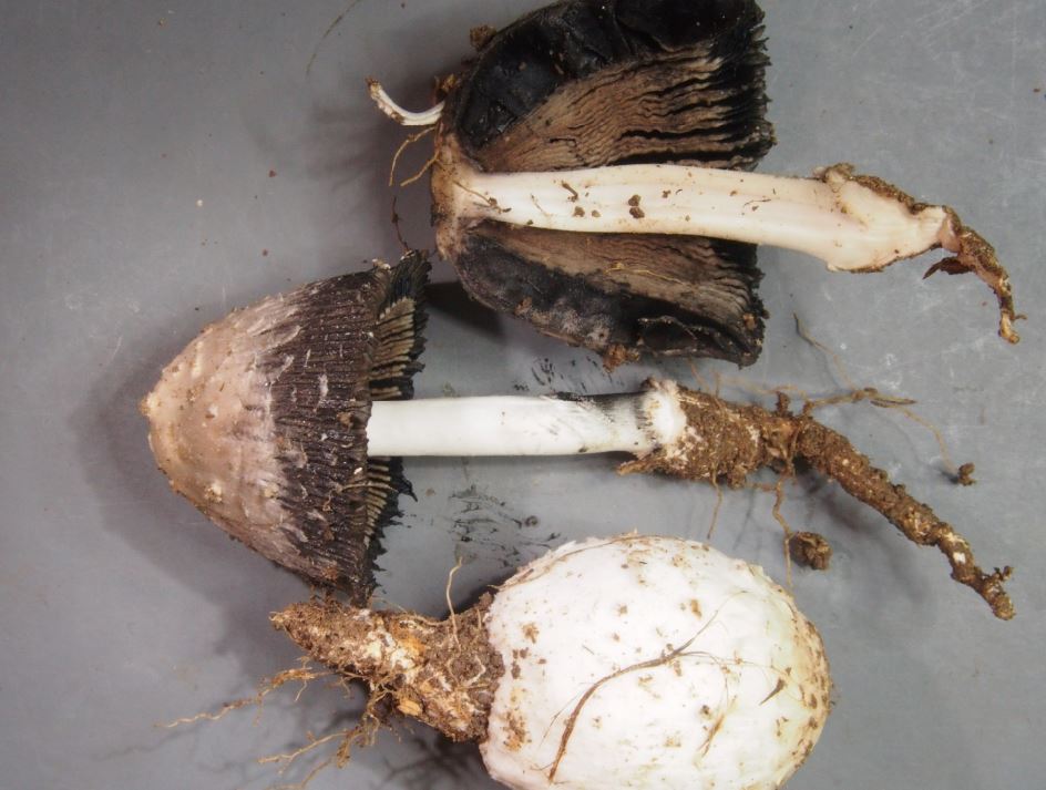 Voile adhérent légèrement au chapeau - taille moyenne - pied 8mm -blanc puis gris brun - (pas d'anneau sauf si chapeau blanc) ->anneau sur la moitié inférieure du pied (pas constaté sur les exemplaires étudiés) ->subsect. Coprinus