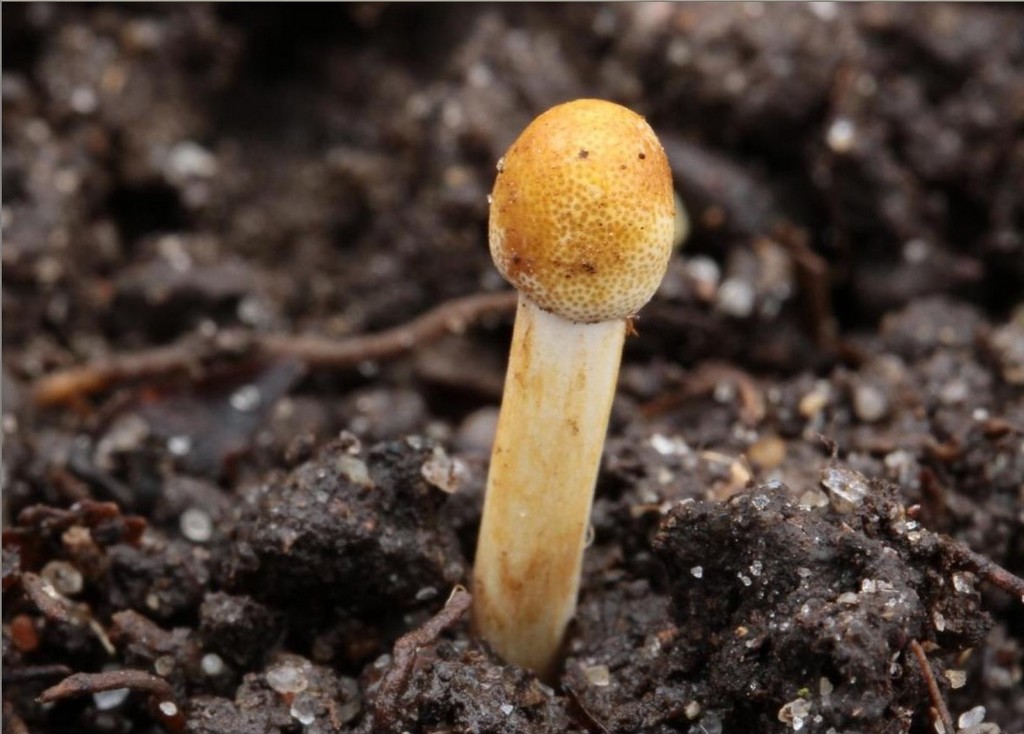 Allez, à défaut de morilles, cette espèce sur terrain calcaire, difficile de la voir si ce n'est la couleur qui attire le regard... Le sommet mesure 3-4 mm