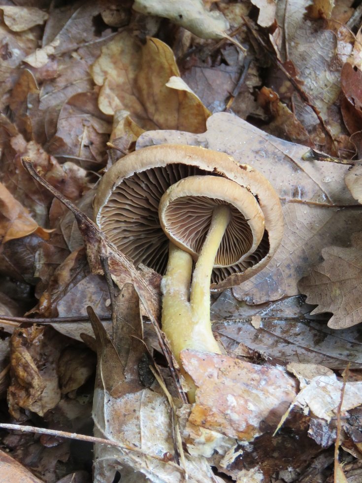 les Cortinariaceae sont des champignons mycorhiziens. Si tu observe le mycélium sur les photo, te remarqueras qu'il envahit les feuilles jusqu'à former un amas à la base du pied. Cela indique que ce champignon est saprophyte.