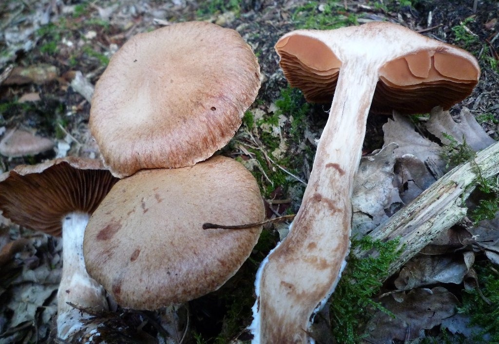 les lames ne sont pas très colorées pour C. laniger mais c'est surement lié à la photo car sur l'exemplaire à l'arrière sur la première photo, le voile blanc parait bien cotonneux et guirlandé et non pas en chaussette. La chair est roussâtre (sans bleu ? qui existe chez torvus en haut du stipe).