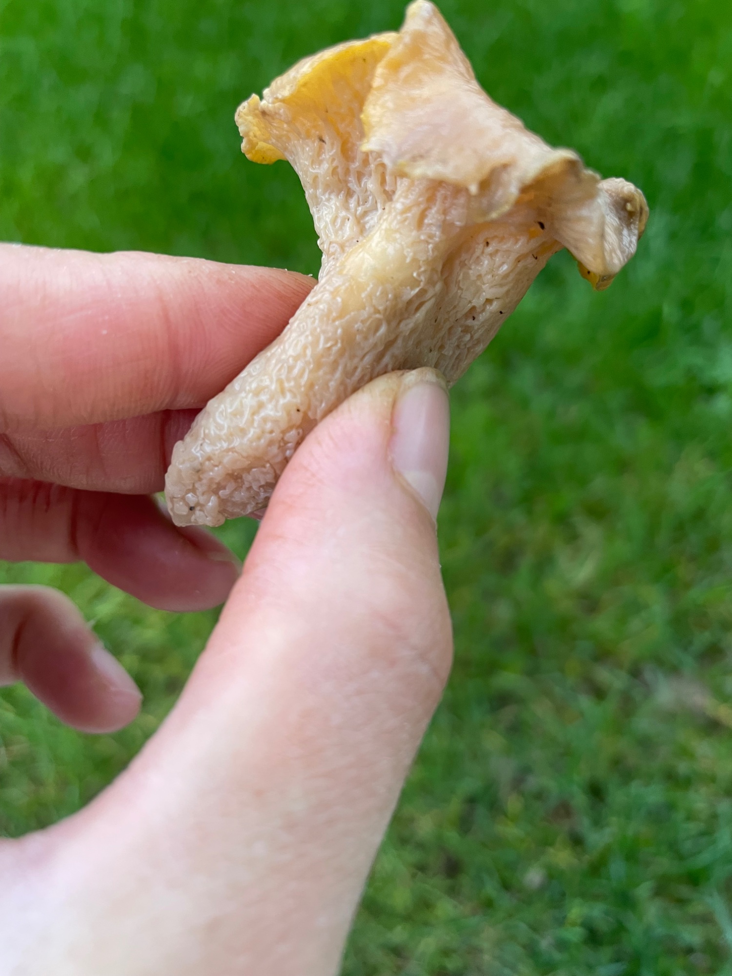 craterellus mais je me demande ce que c’est. Elles poussaient en touffe, elles ont des plis sous le chapeau, sont jaunes très pâle avec des reflets violet rose. Les plis continuent sur le pied pour certain et pas sur d’autres. Ils sont parfois peu marqués.