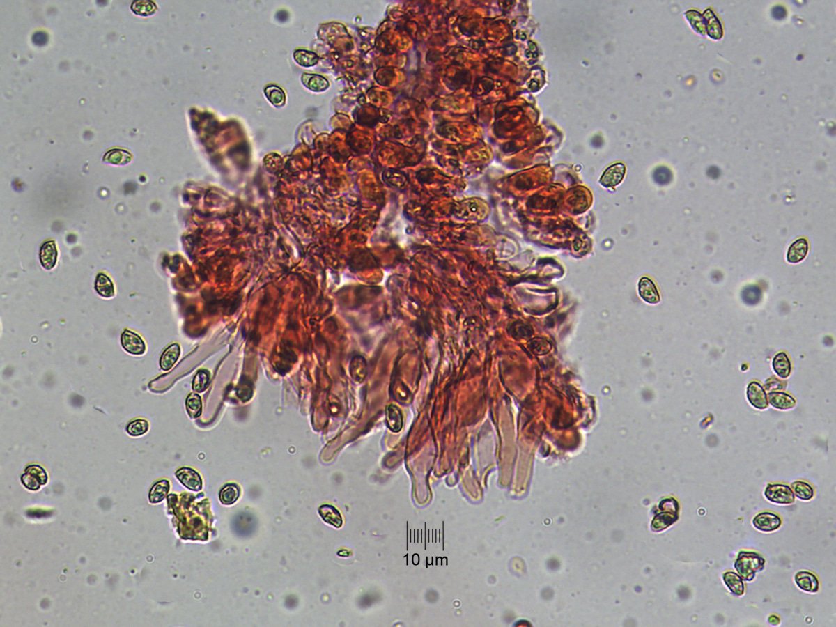 Spores (7,4) 7,9 - 9,4 (10,7) × (4,8) 4,9 - 5,6 (5,9) µm