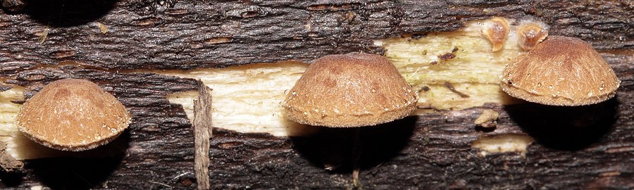 voilà quelques exemplaires probablement sur hêtre du genre "crepidotus" ou proche... le plus gros n'atteigant pas la taille de l'ongle du petit doigt, restes nets de voile, sporée rouillée, spores en oeuf lisses avec il me semble un pore indistinct germinatif, nombreuses cheilo lagéniformes en pointe