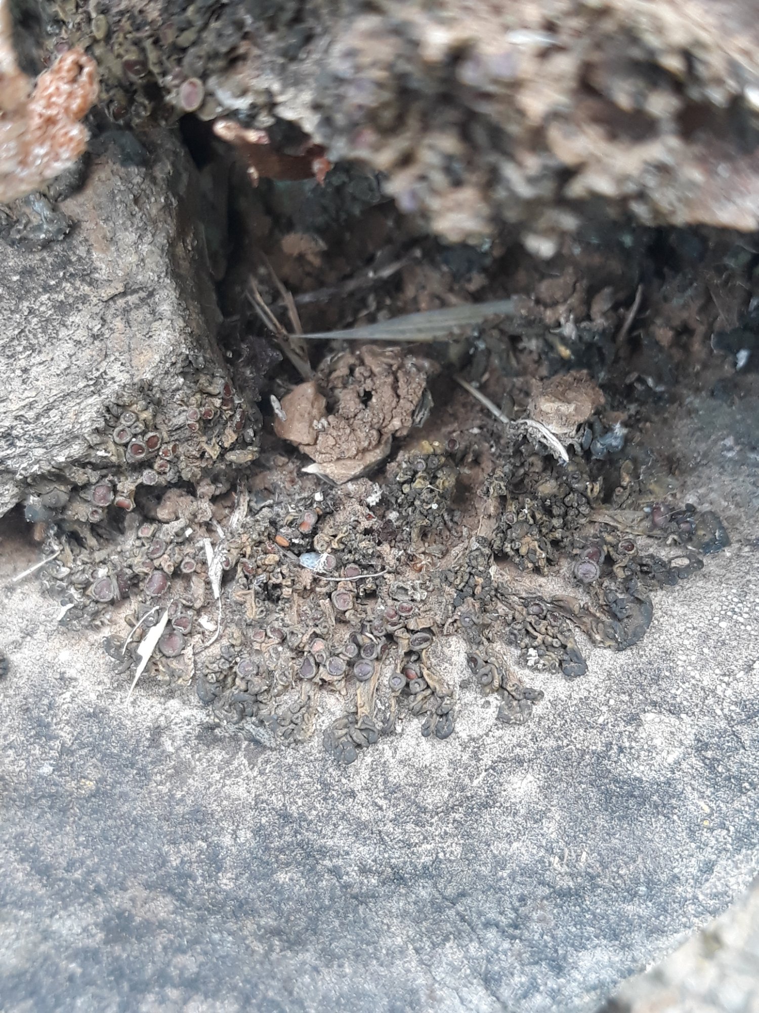 Edit : j'ai aussi mesuré le diamètre des apothécies à sec. Les plus développées sont autour de 2mm. Et le lichen augmente en taille avec l'eau, donc sans doute davantage encore.