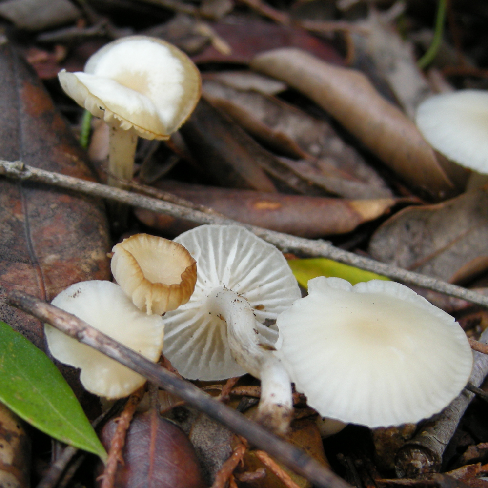 Encore quelques hygrocybes que je vois souvent en Corse. Cette petite poussée le 10/02/17 dans mon terrain de Palombaggia (C-du-S), sous un petit bosquet mêlant olivier, genévrier, chêne vert, arbousier et derrière une haie d'Elaeagnus ebbingei. Taille 2 à 3 cm, non visqueux, aucune odeur ni saveur notable. J'ai tendance à appeler ces trucs là H. virginea ou cereopallida mais en fait ce n'est pas trop leur habitat. Y a t-il la moindre chance de les déterminer sans micro ?