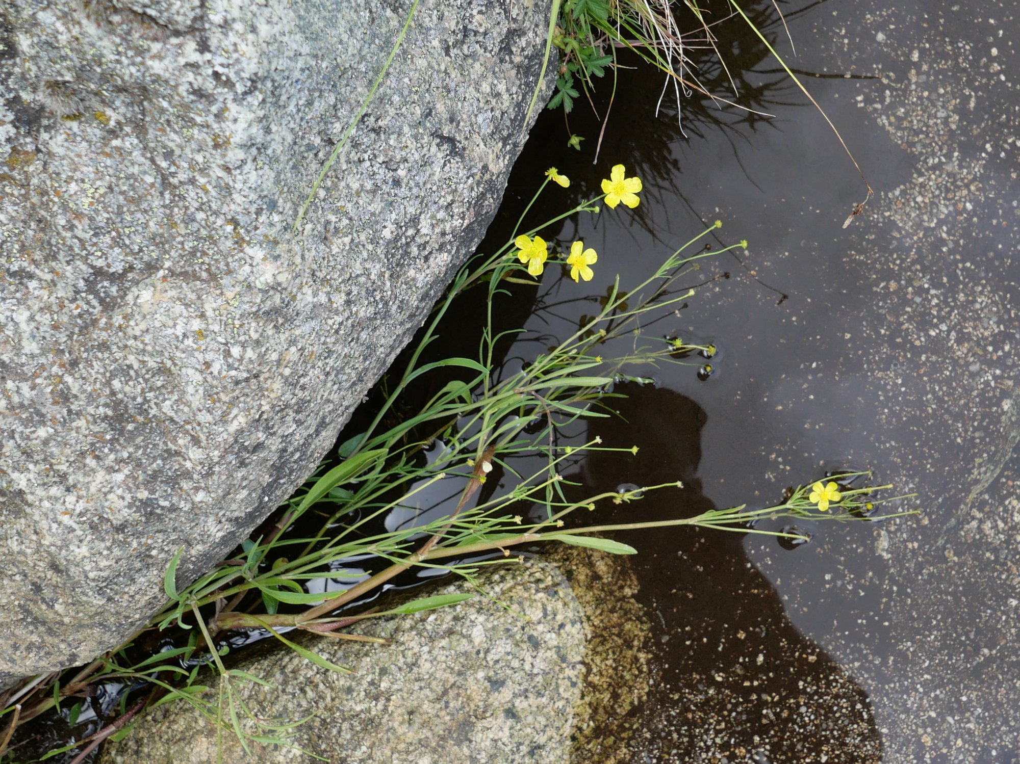 Toujours sur le sentier de Quenza au Cuscionu par Arja Talesa le 29/07/25, à la traversée d'un petit ruisseau, vers 1200 m. La piètre qualité de cette photo permet-elle tout de même d'avancer un nom pour cette fleurette ? Une renoncule je dirais, peut-être déjà présentée (je regrouperai).